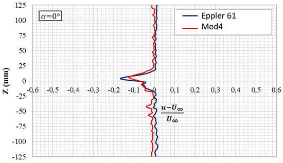 where ann stand for the velocity modulus measured for the modified and the original airfoils, respectively, at each position.