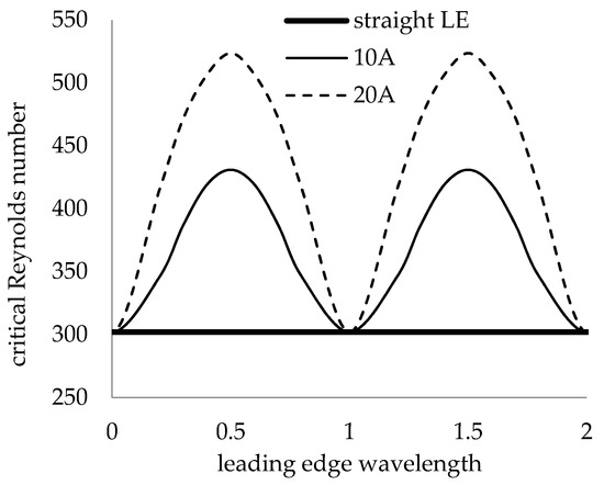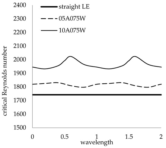 - The global stability analysis performed across the span of the swept plate showed that smaller leading-edge wavelengths produced relatively constant critical Reynolds number profiles that were larger than those of the straight leading edge, while larger leading-edge wavelengths produced oscillating critical Reynolds number profiles.