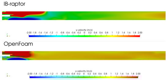 computed by IB-Raptor and rhoSimpleFoam is shown at the top and the bottom of