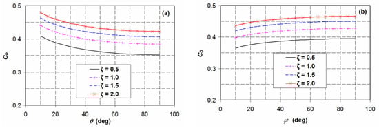 Typical variation of free-flow discharge coefficient with the (a) upstream- and (b) downstream-face slopes for various values of relative overflow head . and in (a) and (b), respectively, kept at 26.57°.