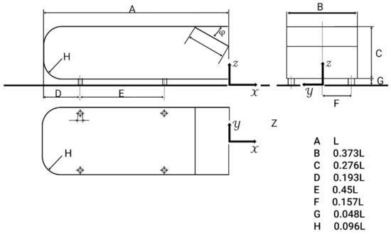 The experimental tests were carried out in the low subsonic wind tunnel of Dana Aerodynamic Research Laboratory at Amirkabir University, which has a 1 m × 1 m × 2.5 m test section. The air velocity in the wind tunnel is adjustable between 5 and 60 m/s with the turbulence intensity of approximately . In the present research, the freestream velocity was 10 m/s corresponding to . The Ahmed body dimensions in experiments (Figure 7) were the same as the one used in simulations. The Glauert’s correction with [20] has been utilized to minimize the experimental measurement errors.