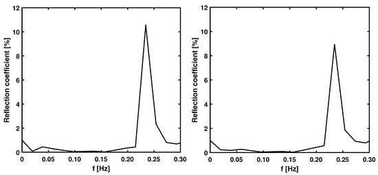 On the other hand, the differences in peak values could be attributed to the different wave absorption strategies used in HOS-NWT and the CFD model; in HOS-NWT a passive absorption based on numerical relaxation is applied, while in olaFlow active (shallow water) absorption combined with additional numerical dissipation is adopted. Therefore, a reflection analysis according to Mansard and Funke [30], has been applied to both HOS-NWT and CFD at the same respective positions. When comparing the reflection coefficients in Figure 7, it is clear that HOS-NWT shows larger reflection at the high frequencies.