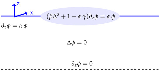 We begin by stating the governing equations for the plate–water system, which was discussed in detail in [47], assuming that the equation of linear water waves governs the problem. The kinematic condition is