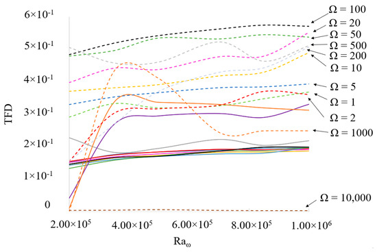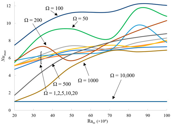 A total of 66 new simulations have been conducted in the present work. In line with Hirata et al. [31], Ω has been varied from Ω = 1 to Ω = 103, with the addition of a very high value of Ω = 104. As explained before, a fluid with Pr = 15 has been considered in place of Pr = 7. Another distinguishing mark of the present analysis is the extension to = 106.