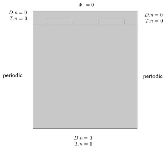 Geometry of the electric part of the proposed SAW unit cell and electrical boundary condition.