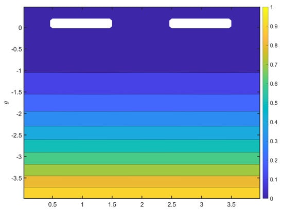 The boundary conditions for electric potential are straightforward (see Figure 3). So,  the electric potential is equal to a specific value for the emitting electrode, and it is equal to zero for the bottom wall as a collector electrode. It is not so easy to obtain the boundary conditions for the electric space charge density.