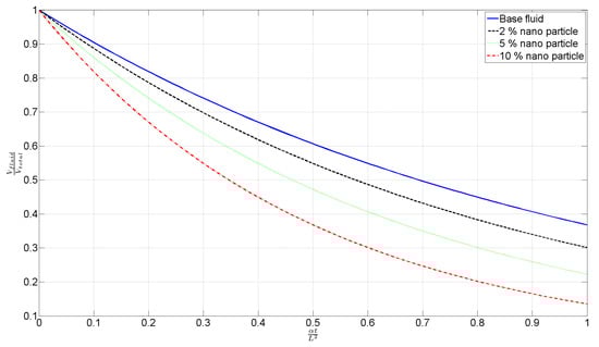 As shown by increase of time, the volume fraction of the system is decreased till all the material inside the volume is changed to liquid. As the volume fraction of nanoparticle material is increased, the heat transfer rate increases, and the phase change process is faster since the solid NEPCM phase change is finished sooner, and there would be no time delay after that.