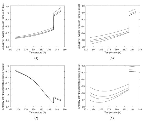 - Kvamme, B. Enthalpies of Hydrate Formation from Hydrate Formers Dissolved in Water. Energies 2019, 12, 1039. [Google Scholar] [CrossRef] [Green Version]