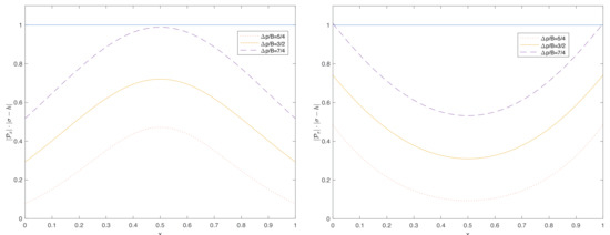 The plots show that the two models give rise to similar curves when and 0.5. If , the difference between the two curves is much more evident. We remark that, when , left panels, the largest difference occurs in the central region. On the contrary, when , right panels, the largest difference occurs in the external regions.