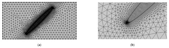 In the Finite Element formulation, the flow variables, pressure and the velocity components were represented by linear elements (P1 + P1), the transport variable by 2-order elements. Meshing was always made with a considerable refinement near and within the crack. Figure 2 shows an example mesh. A typical mesh consists of 3308 nodes, 6520 elements and 9750 degrees of freedom (DOF) for flow and 12,825 DOF for the transport discretization. Checking on the P2 + P1 alternative for the flow discretization led to 2899 DOFs. With an average element quality of 0.88 the meshing is good.