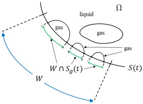 Because bubbles and sprays are frequent in engineering design with fluids, numerous papers on the modeling and simulation of gas–liquid two-phase flows have been published such as [13,14,15,16,17]. Working models to compute gas–fluid flows can be sorted into two classes: (i) phase field or level set models where the gas–liquid interface is traced [18,19,20,21]; (ii) averaged models [22,23,24]. Several reasons support our choice for an averaged model: (i) There are many bubbles and their generation seems random, we only know that there is a higher chance of gas generation occurring in regions of higher concentration of dissolved gas; (ii) even if the bubble generation can be well predicted, vast amounts of bubbles are generated in short moments and the computational cost for capturing each bubble is prohibitive; (iii) interfacial terms (e.g., terms caused by a phase change) can be easily estimated with an averaged model (see Appendix A).