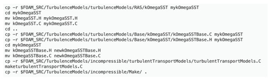 Secondly, the files and options directories from the Make folder and turbulentTransportModels.C file were copied to the newkOmegaSST folder. The purpose of Make files is to connect the library with the new turbulence model. Afterward, the wmake libso command was written to compile the library, which can be subsequently used as a new library for simulations.
