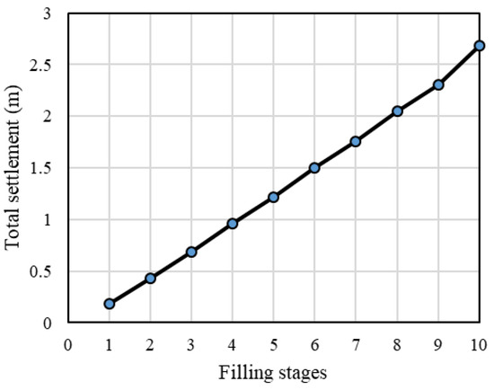 Total settlement of the fill materials for case 1.