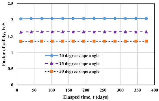 Variations of factor of safety with time based on stability analyses for scenario 3.
