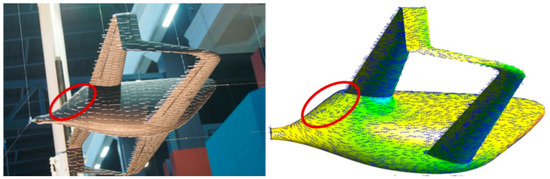 Further analysis of the fore body using true-scale velocity vectors reveals a flow acceleration well upstream of the upper wing, probably due the streamlined, airfoil-like shape of this part of the fuselage with a significant contribution to lift (Figure 10).