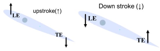 Schematic of upward/upstroke/pitching up (↑) and downwards/downstroke/pitching down (↓).