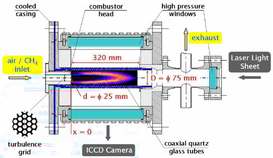 - Siewert, P. Flame Front Characteristics of Turbulent Lean Premixed Methane/Air Flames at High-Pressure. Ph.D. Thesis, Swiss Federal Institute of Technology Zurich (ETH Zurich), Zürich, Switzerland, 2006. [Google Scholar] [CrossRef]