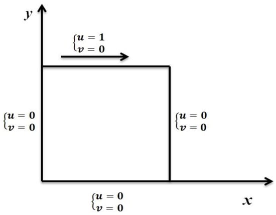 Geometric configuration of the lid-driven cavity with boundary conditions.