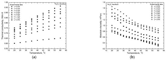 - Sundar, L.S.; Singh, M.K.; Sousa, A.C.M. Investigation of thermal conductivity and viscosity of Fe3O4 nanofluid for heat transfer applications. Int. Commun. Heat Mass 2013, 44, 7–14. [Google Scholar] [CrossRef]