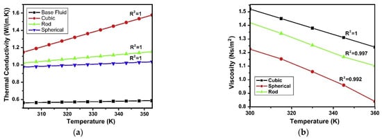 - Timofeeva, E.V.; Routbort, J.L.; Singh, D. Particle shape effects on thermophysical properties of alumina nanofluids. J. Appl. Phys. 2009, 106, 014304. [Google Scholar] [CrossRef]