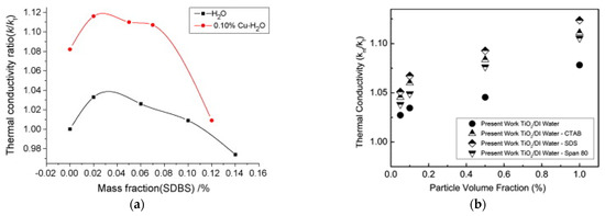 - Maheshwary, P.B.; Handa, C.C.; Nemade, K.R. A comprehensive study of effect of concentration, particle size and particle shape on thermal conductivity of titania/water based nanofluid. Appl. Therm. Eng. 2017, 119, 79–88. [Google Scholar] [CrossRef]