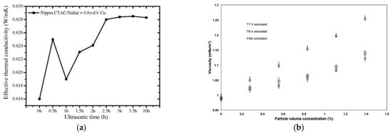 - Silambarasan, M.; Manikandan, S.; Rajan, K.S. Viscosity and thermal conductivity of dispersions of sub-micron TiO2 particles in water prepared by stirred bead milling and ultrasonication. Int. J. Heat Mass Transf. 2012, 55, 7991–8802. [Google Scholar] [CrossRef]