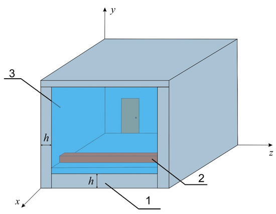 The system configuration: 1—solid walls, 2—heat-generating source, 3—glass wall.
