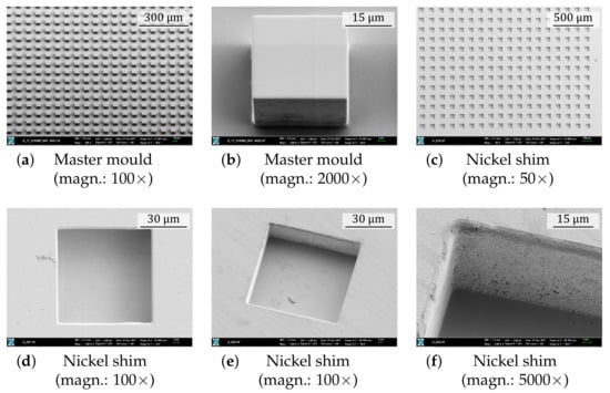 - Heckele, M.; Schomburg, W.K. Review on micro molding of thermoplastic polymers. J. Micromech. Microeng. 2003, 14, R1–R14. [Google Scholar] [CrossRef]