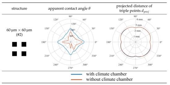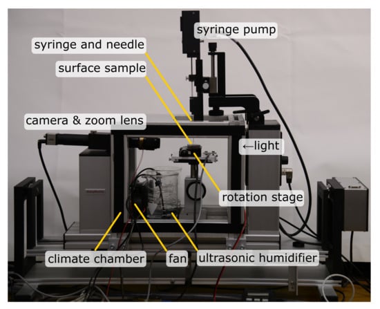 4.3. Effectiveness of the Climate Chamber and Error in Apparent Contact Angle Measurements