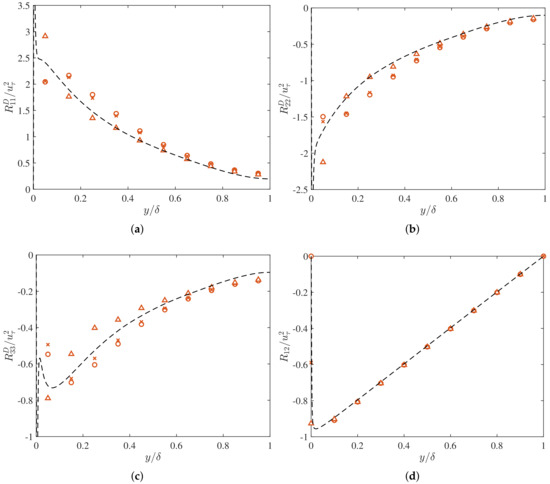 Figure 4d) shows that by including the effect of the SGS model, the missing stresses can be supplemented. The three diagonal components of