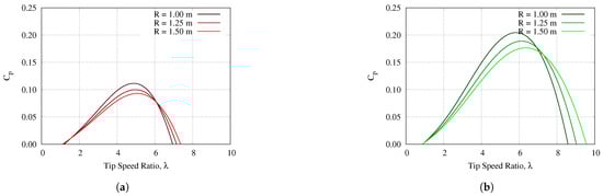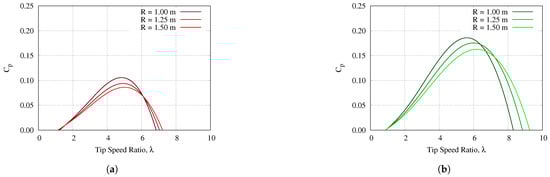 - The power coefficient or efficiency of the flexible VAWTs was much higher for smaller turbine radius. In fact, for a radius of 1.0m, the rigid VAWT is simulated to have a maximum power coefficient of around only 10%, compared to 18.9% for the flexible VAWT. This results in an astounding 90% increase in efficiency.
