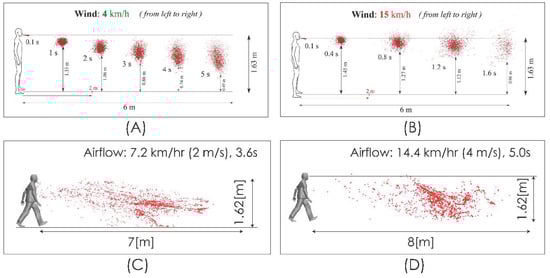 APA StyleCornejo, P., Guerrero, N., & Sandoval, V. (2021). Aerodynamic Dispersion of Respiratory Droplets and Aerosols by Turbulent Airflow. Fluids, 6(3), 119. https://doi.org/10.3390/fluids6030119