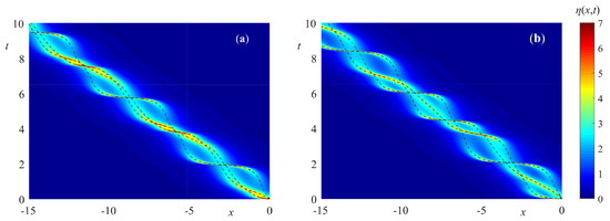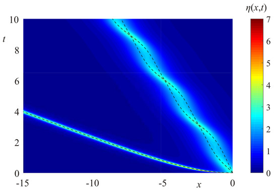- Kachulin, D.; Dyachenko, A.; Dremov, S. Multiple Soliton Interactions on the Surface of Deep Water. Fluids 2020, 5, 65. [Google Scholar] [CrossRef]