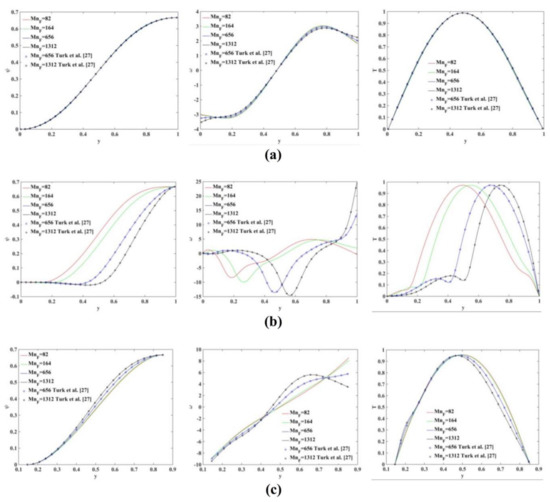In this section we investigate the influence of microrotation number (K) and Reynolds number on the flow regime. The fluid properties, the boundary conditions and external magnetic field, are identical to the previous cases.