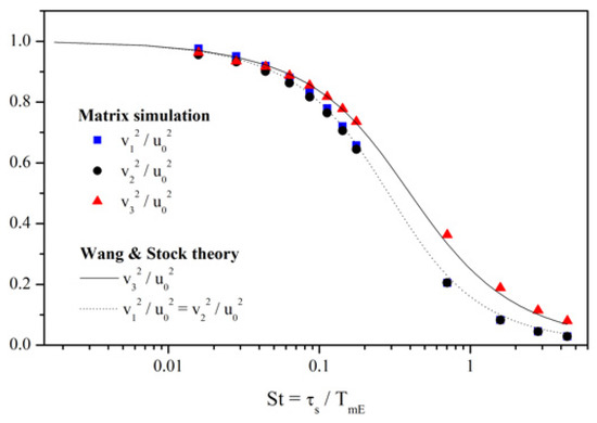 Numerous studies in turbulent diffusion and dispersion use models based on Monte-Carlo methods or Markov chain methods, and the validation of these models is generally performed on a few available experimental test flow cases in grid turbulence [15,16] or the center region of a pipe flow [17]. These flows are well adapted to simulate an ideal turbulent field, homogeneous isotropic stationary turbulence (HIST). The main objectives of the present work are to present an overview of their efficiency to simulate the dispersion of heavy particles in HIST, since Lagrangian modeling is a tool also developed in more complex flow configurations. The reference will be the theoretical contribution of Wang and Stock [18,19,20]. It will be shown that most models are far from satisfactory, even in such an ideal theoretical turbulent field as in the case of dilute gas–solid particle-laden flows.