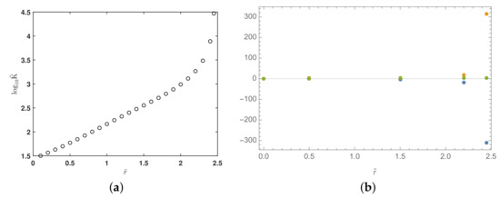 Going back to Figure 4, one notices that the data cover a wide range of numerical dynamics when becomes large. Actually, the ratio between the smallest and the largest slopes crosses the double-precision limit for of approximately . Beyond this value of , any double-precision solver loses numerical control of the system. The machine double precision has to be extended to a parametrized machine-zero level to have a correct digital representation of the slopes. Let us introduce the ratio, ,