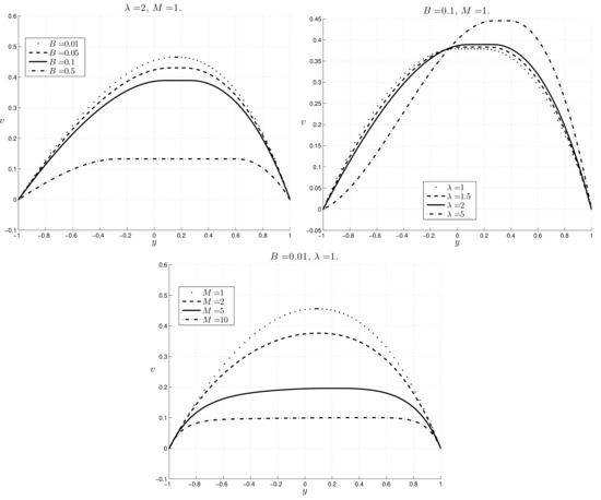 Remark 5. We furnish some physical characteristics of the flow in the three cases. These features do not depend on the presence of the external magnetic field.
