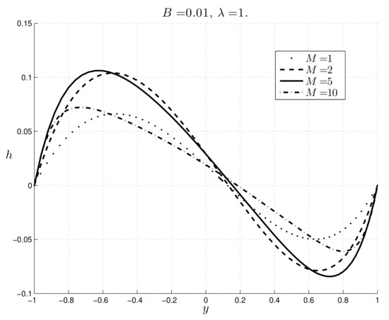 Section 3. We find that the presence of the external magnetic field tends to prevent the reverse flow as for a Newtonian fluid. The influence of