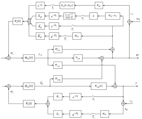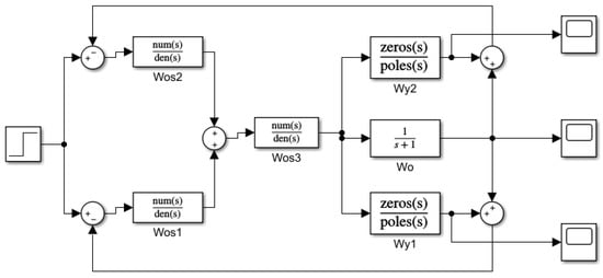 Relations (12), (13), (14) together with the vector represent a model of the closed multiloop, multidimensional multi-rate continuous–discrete UAV stabilization system, which takes into account both the influence of all quantizers of the system and its multiloop, including the cross-connections of control channels. Note, as indicated above, that the use of mathematical models of automatic control systems in the form of transfer functions allows using models in the form of structural diagrams.
