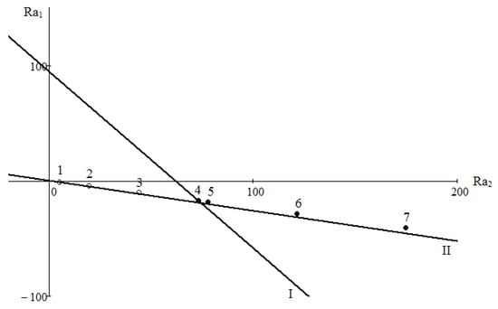 where , , mi is the molecular mass of i-th component, , and then represented on the coordinate plane (Ra1, Ra2). Zero density gradient line, the position of which is determined by the following equation