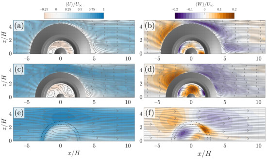 In summary, these comparisons across the cases considered suggest some differences among —most notably, deviations between the lowest case and the three higher cases (which match well). The lack of consistency in this regard aligns well with differences noted between the incoming flow at the lowest and those of the three higher cases, given the former has virtually no logarithmic layer. This suggests that the weak turbulent scale separation in the incoming boundary layer, found in the lowest case, may have been responsible for the trends observed. However, our results suggest that this dependence decays with increasing as the log layer of the incoming turbulent boundary layer matures and scale separation grows. As such, the remaining results and analysis delving into the flow around mounded craters focus on the highest results, in an effort to minimize the dissonance between observations in our physical models and the actual flow in full-scale impact craters.