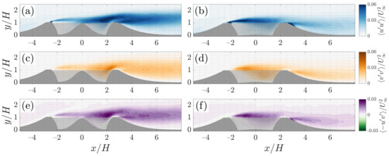 In addition, the lower aspect ratio of the Gale Crater model leads to overall lower Reynolds stress magnitudes compared to the idealized case, as the realistic model obstructs the flow to a lesser degree. As such, the color bar limits in