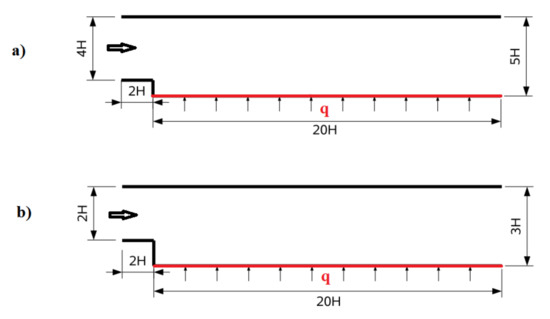 Computational domain for (a) first configuration and (b) second configuration.