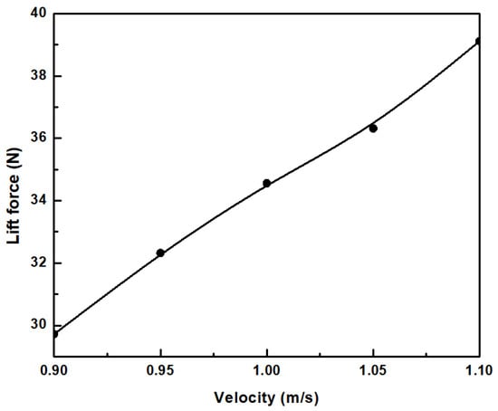 The average lift forces acting on the glider body with the angle of attack θ = −10° at the different velocities.