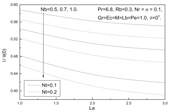 Brownian motion number Nb, thermophoresis parameter Nt and Lewis number Le effects on local Nusselt number.