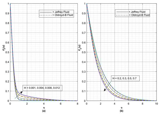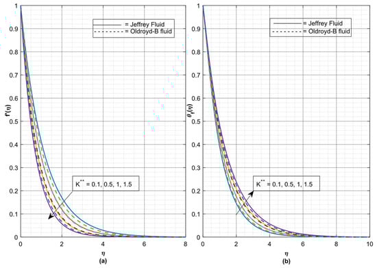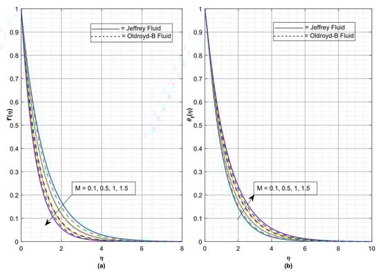 - The velocity of the Oldroyd-B fluid declines faster and high heat transfer is seen for lower values of magnetic parameter when compared to Jeffry fluid. However, for higher values of magnetic parameter, velocity of the Jeffery fluid declines faster and shows high heat transfer when compared to Oldroyd-B fluid.