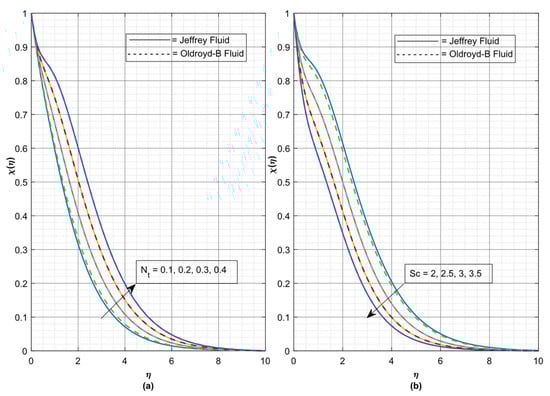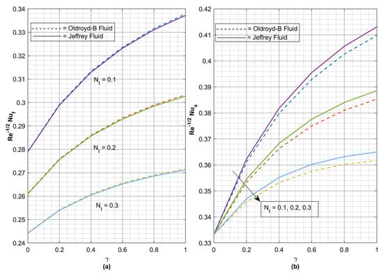 - Jeffery liquid shows higher fluid phase heat transfer than Oldroyd-B liquid for rising values of Brownian motion and thermophoresis parameters.
