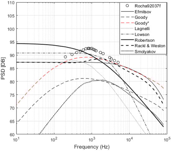 8] have compared existing semi-empirical models used to describe the acoustic response. Blittersyck and Rocha found that models by Efmitsov, and Rackl and Weston best predicted the low to medium frequency; while models by Goody and Smol’yakov best predicted the overlap and high-frequency ranges. The work by Hwang et al. concluded that Goody provided the best overall prediction of the pressure spectra for flows in air and water [