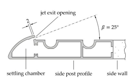 Wall jets blowing out of the frame profiles of the front opening—schematic representation.