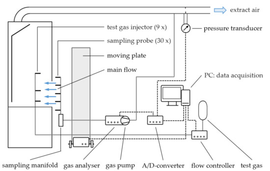 - EN 14175-3:2019. Fume Cupboards, Part 3: Type Test Methods; German Version: DIN EN 14175-3:2019; Beuth Verlag GmbH: Berlin, Germany, 2019. [Google Scholar]